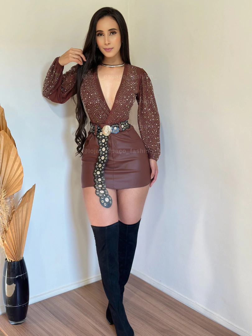 Confeccionada em couro sintético, a saia apresenta um zíper que abre dos lados, proporcionando praticidade e um ajuste perfeito ao corpo. O detalhe de fendinha adiciona um toque de charme, tornando-a a escolha certa para diversas ocasiões.